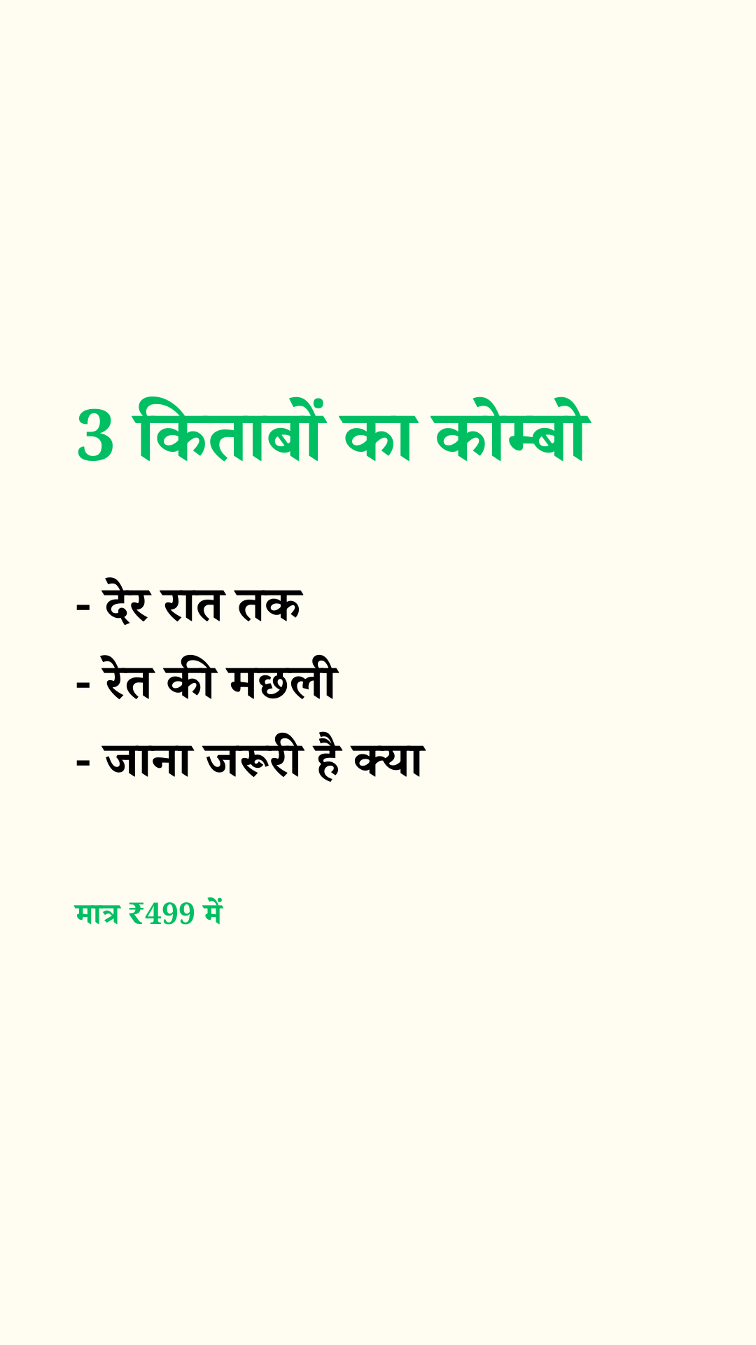 Combo of 3 books - देर रात तक - रेत की मछली - जाना जरूरी है क्या - original Hindi Books | Mart-24